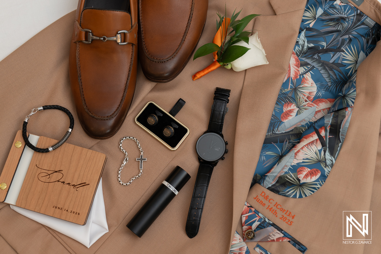 Wedding accessories displayed elegantly for a destination wedding at Avila Beach Hotel in Curacao