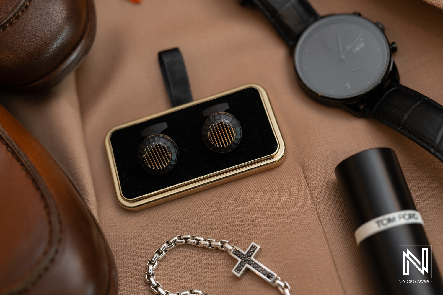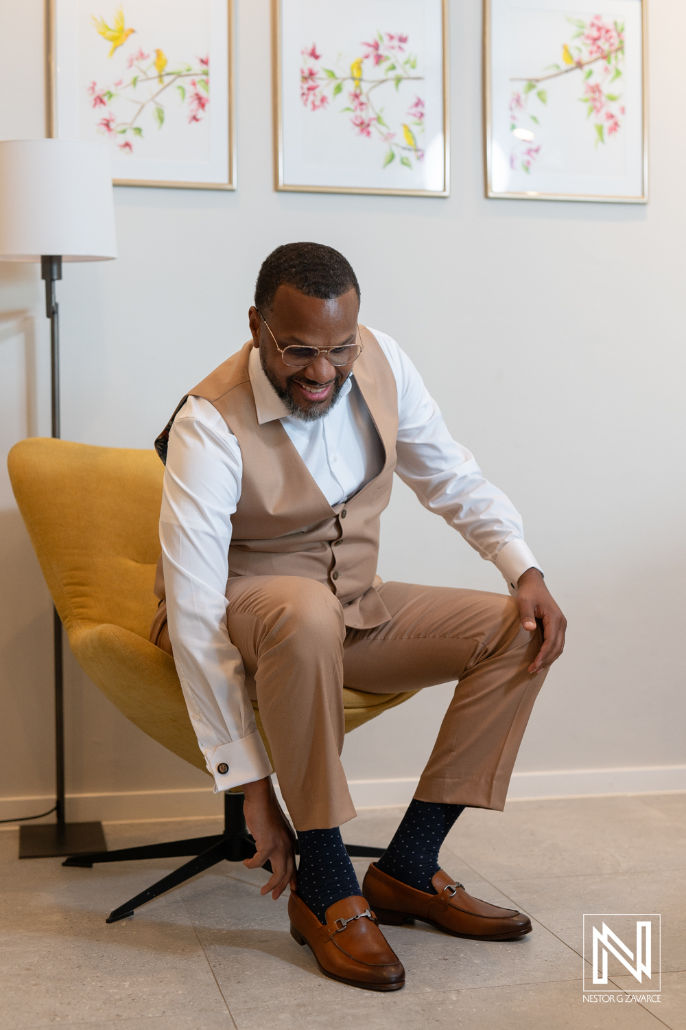 Groom getting ready at Avila Beach Hotel in Curacao for a beautiful destination wedding celebration
