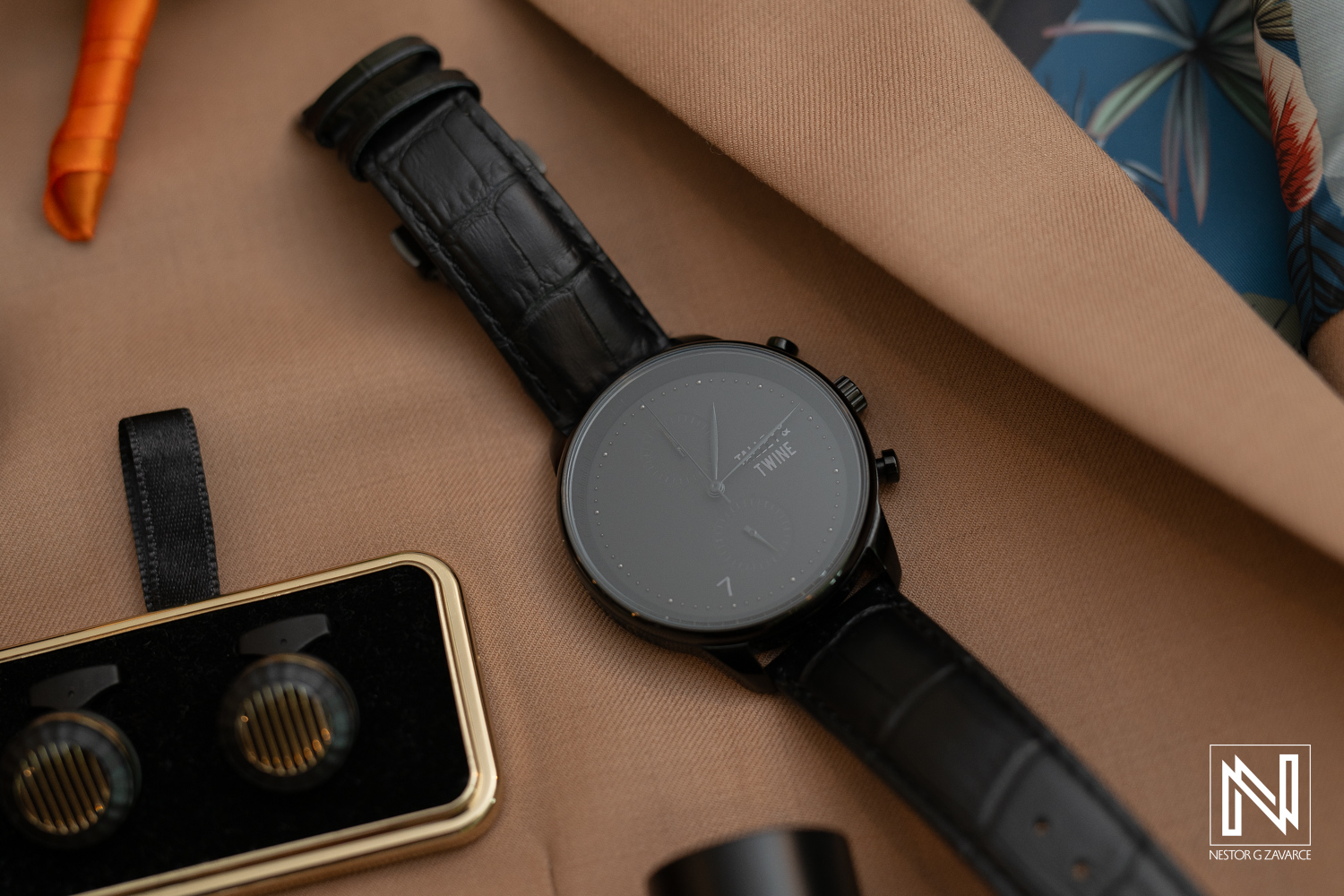 Groom adjusting his watch before destination wedding at Avila Beach Hotel in Curacao