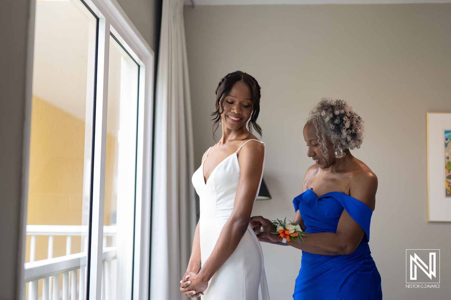 Beautiful wedding preparation at Avila Beach Hotel in Curacao with bride and mother moments captured
